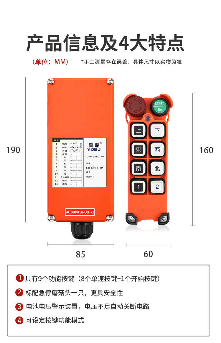 產(chǎn)品廣泛應(yīng)用于機(jī)械、建筑、冶金、汽車、化工、鐵路、施工等可實(shí)現(xiàn)遙控操作的設(shè)備及場(chǎng)所。